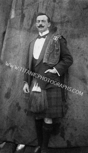 Oceanic, at New York. Mr McPherson, 3rd Officer in kilt. 20 November 1909.
